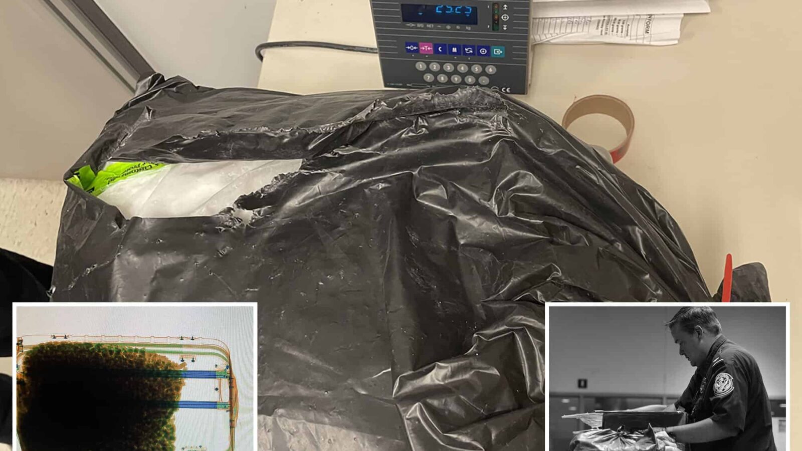 An X-ray scan and physical search of two large suitcases, which the British national claimed had been given to him by a family member, were found to contain black plastic trash bags “filled with large white crystals,” CBP said in a statement.
