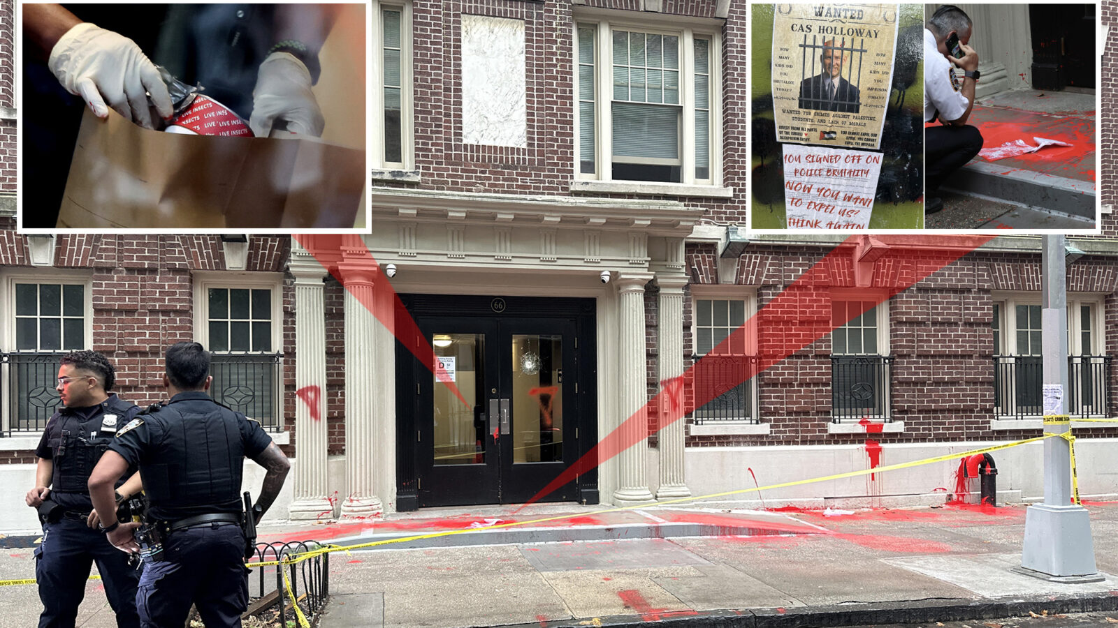 The unidentified perps set the insects loose in the lobby of Columbia chief operating officer Cas Holloway’s Brooklyn Heights building before breaking a glass door and trashing the outside of the dwelling with red paint in the early morning attack, the sources said.