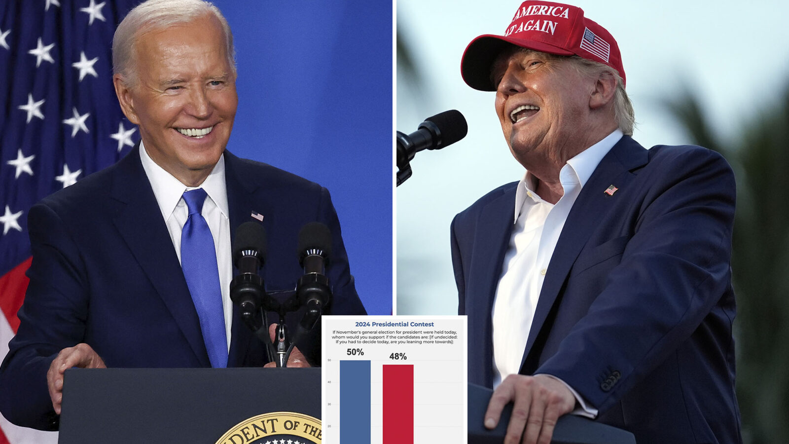 The 81-year-old incumbent has gained on last month’s survey by the outlet, which saw him and Trump tied at 49% among registered voters head-to-head.