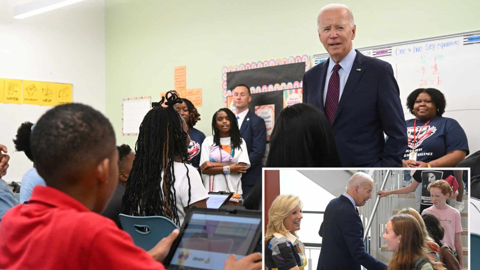 “I tell you what, the hardest thing, I think, is when you come back — what’s the matter, baby? You look at me like, ‘I don’t want to be in this math class’?” Biden told students at Eliot-Hine Middle School on Capitol Hill, breaking off to call out one young scholar.