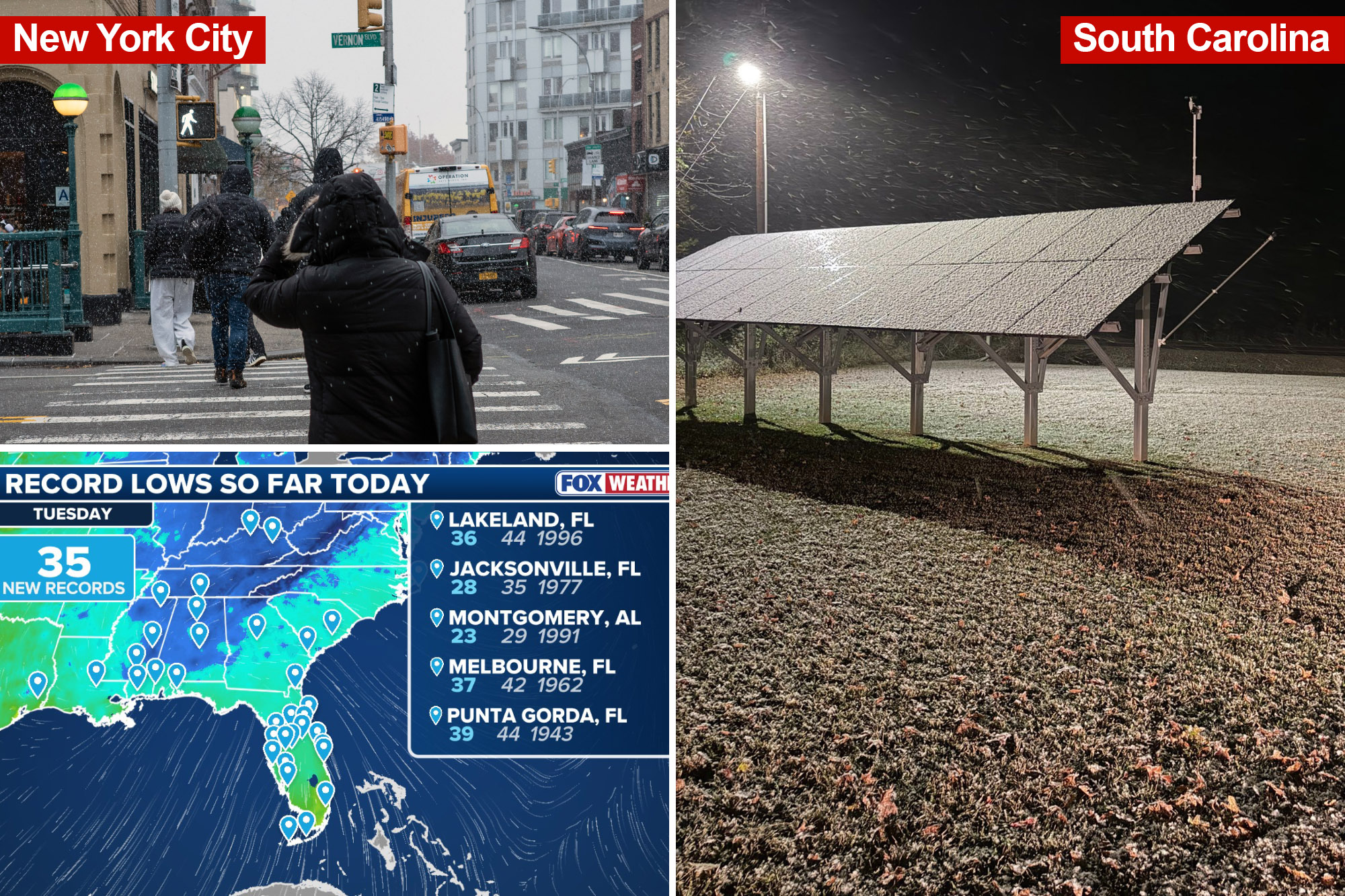 First big freeze of season slams Eastern US with arctic blast, as the South sees snow More than 190 million Americans woke up to an arctic blast on Tuesday, with most people seeing temperatures 15–25 degrees below average from the Plains across the eastern half of the U.S.