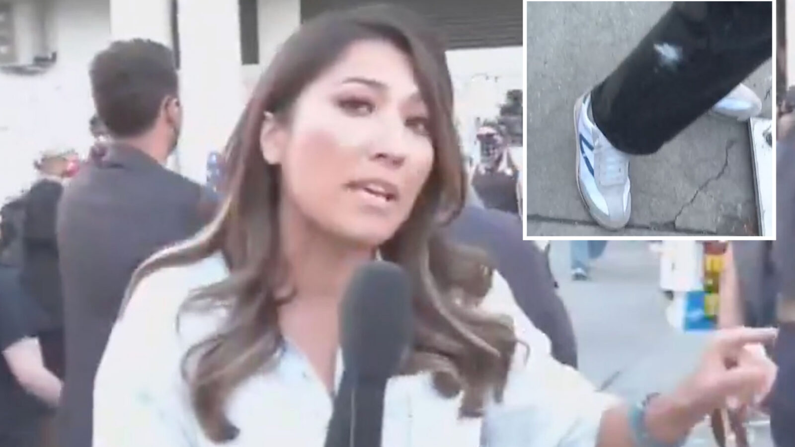 Correspondent Veronica Miracle was on camera covering the unruly crowd when she suddenly ducked and turned away, gasping: “I just got hit.”