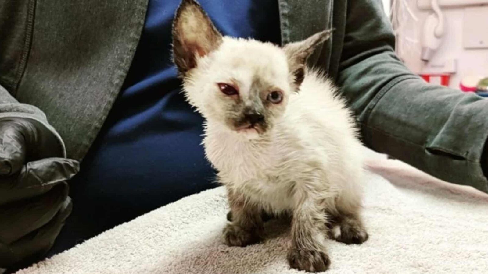 The kitty was taken to a veterinarian in critical condition and was diagnosed with head trauma, singed fur on her face, bruising on her temple, and an eye injury.