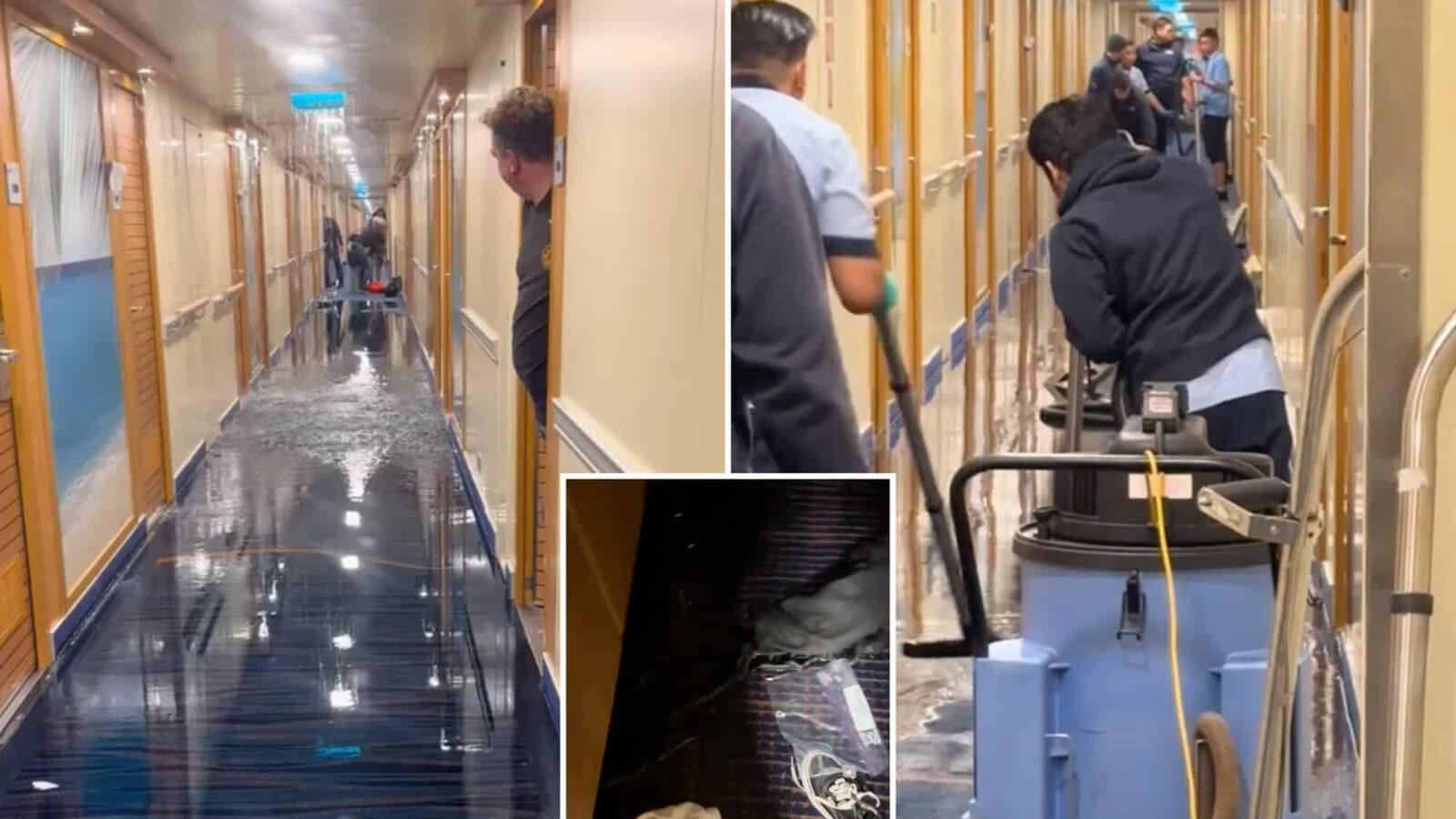 That clip showed her dark, wet cabin reportedly without power and workers attempting to clean up the water in the hallway.