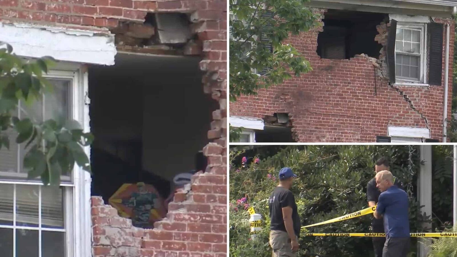 The flying vehicle went on to strike a rock wall, a large tree and a light post before slamming into a 2023 Jeep Wrangler parked on North Main Street and hitting a nearby home.