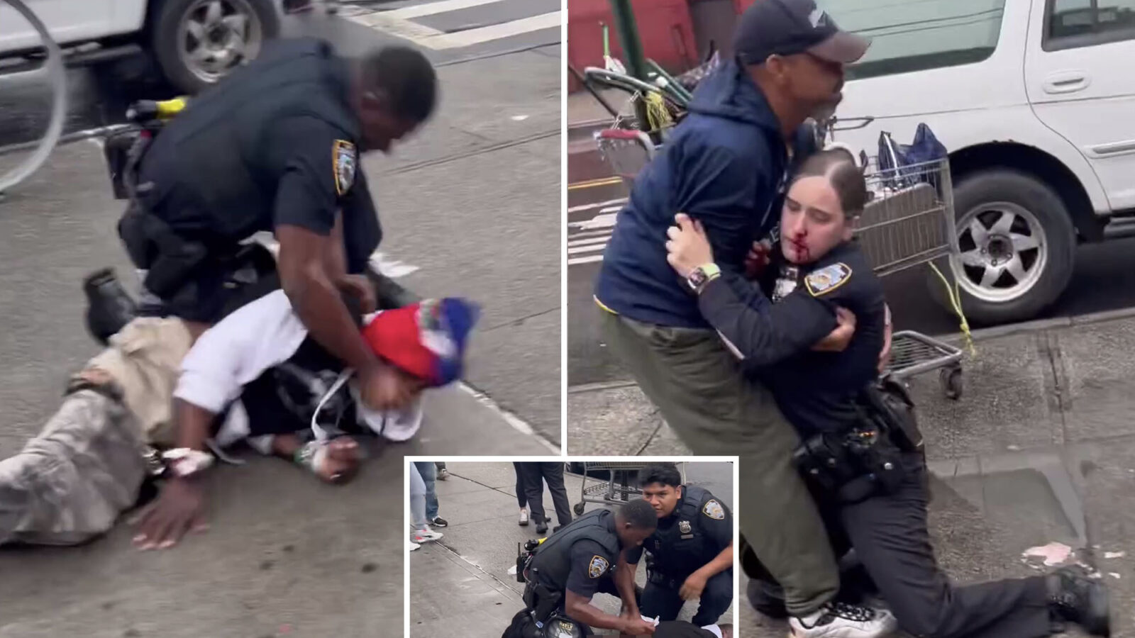 Footage captured by a bystander of the ensuing arrest shows the officer’s partner move in on the suspect while other cops and witnesses check on the injured cop, who is still on the ground with a bloody face, sources said.