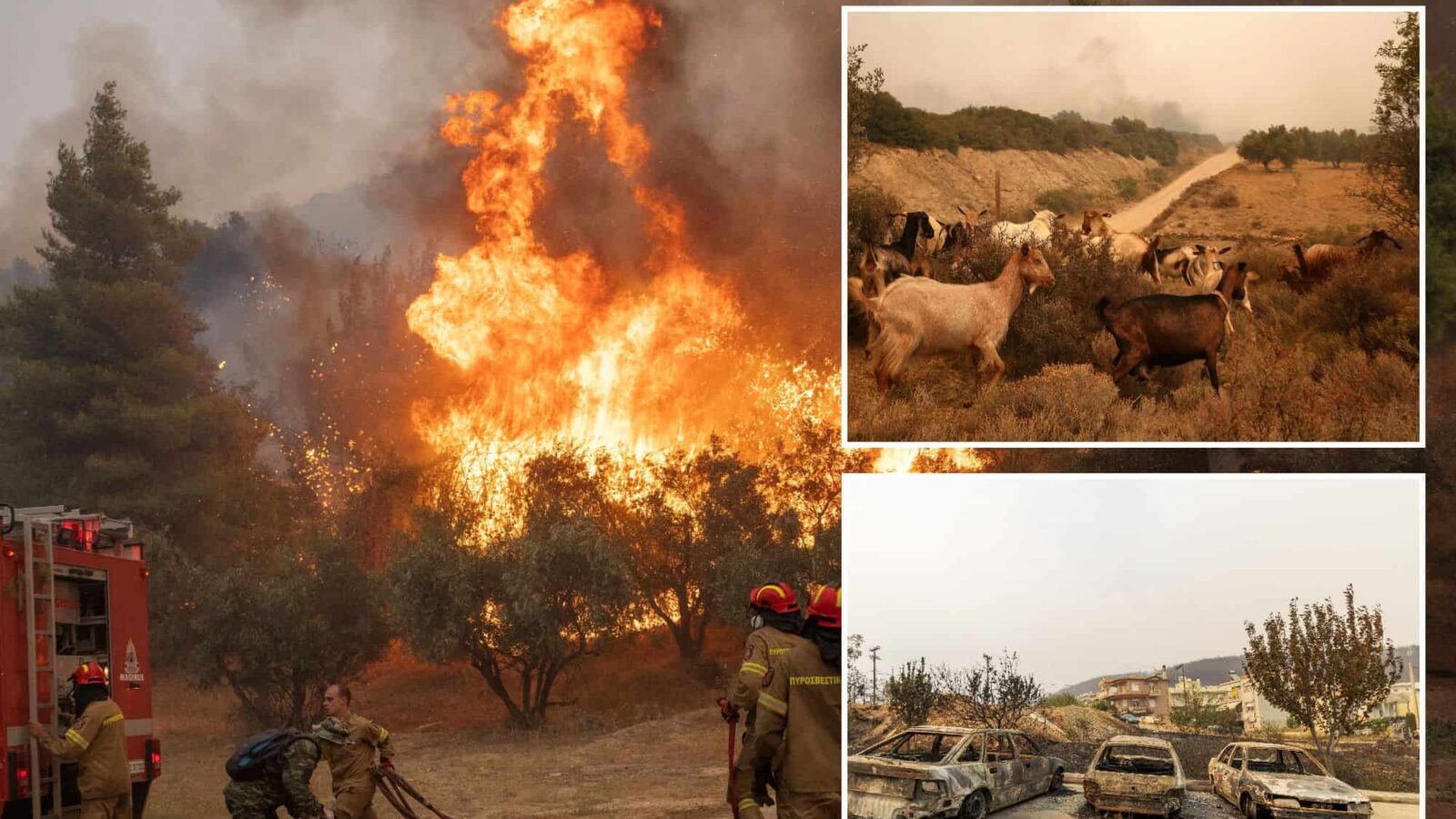 In the northeastern Evros border region, a fire was burning through forest in a protected national park, with satellite imagery showing smoke blanketing much of northern and western Greece.