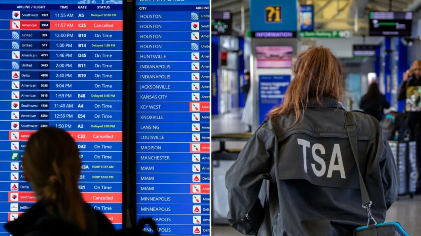 The delays are occurring because Transportation Security Administration (TSA) officers are calling out from work after going unpaid for the third time in nearly six months.