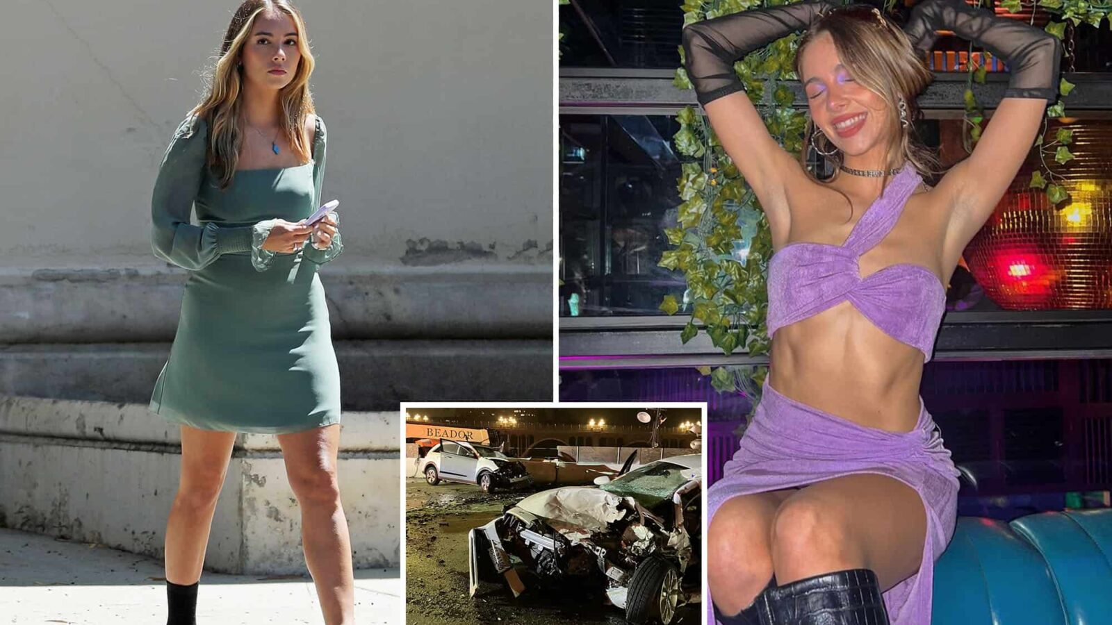 Soap star Haley Pullos was ready for her close-up during a court appearance to face charges for a serious car crash – wearing a stylish green dress and glammed up in TV-worthy makeup that was more appropriate for a night on the town.