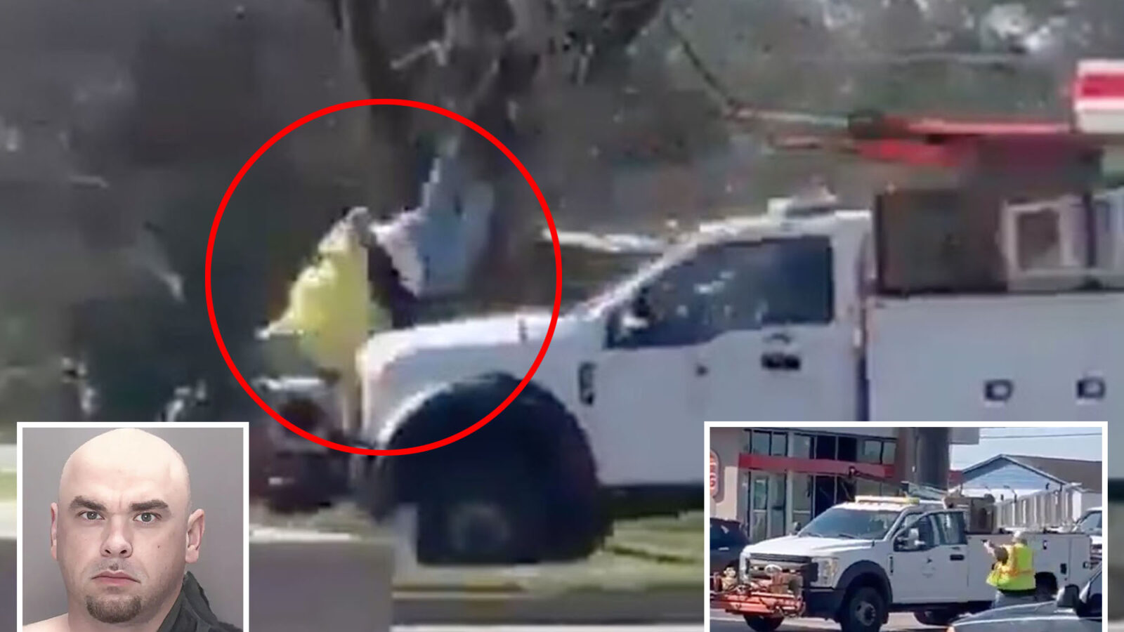 The clip shows Driggers in the white truck backing up.