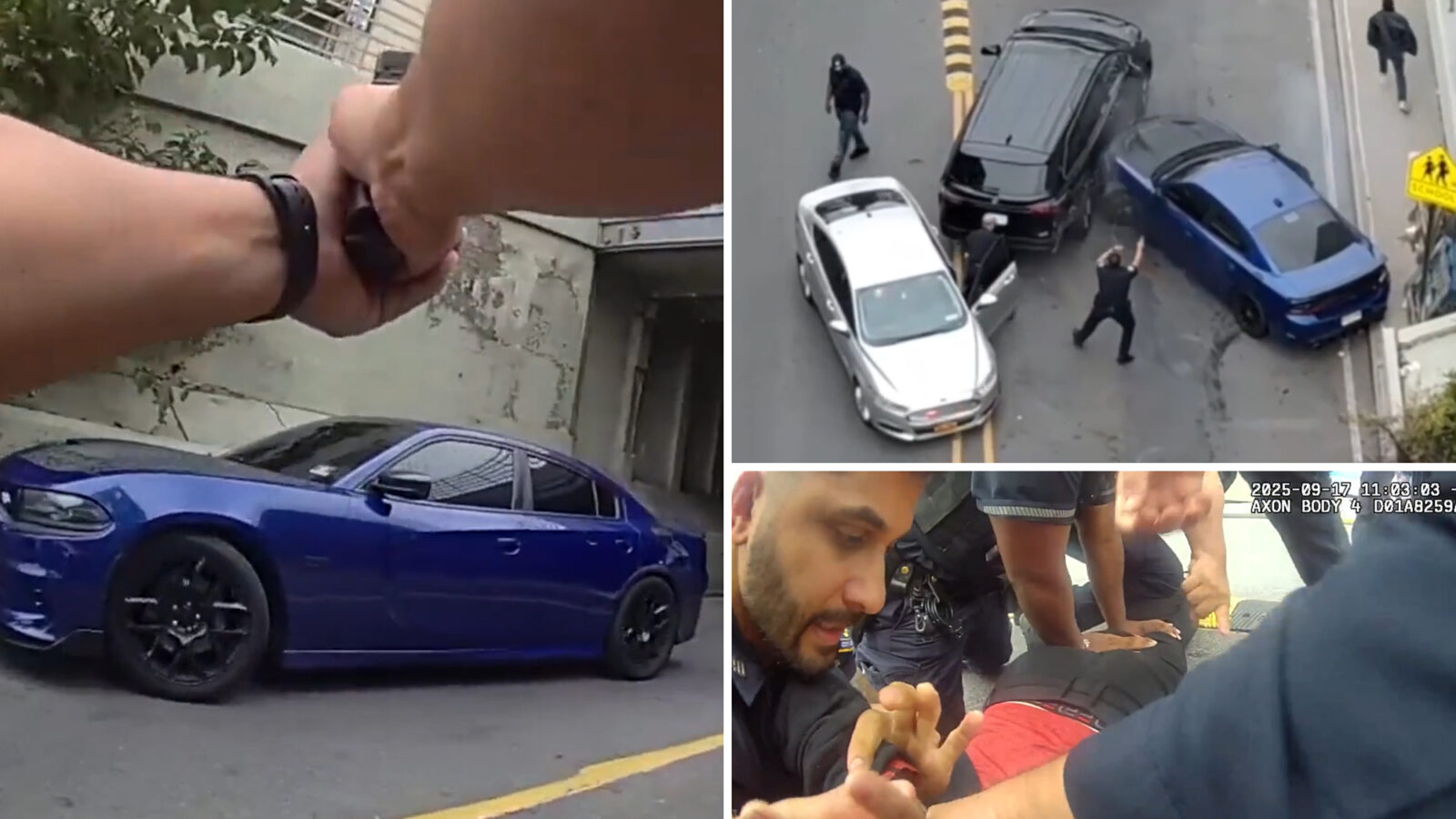 “Get out the car! Get out the car!” a cop chasing the alleged thieves yelled, body camera video shows.