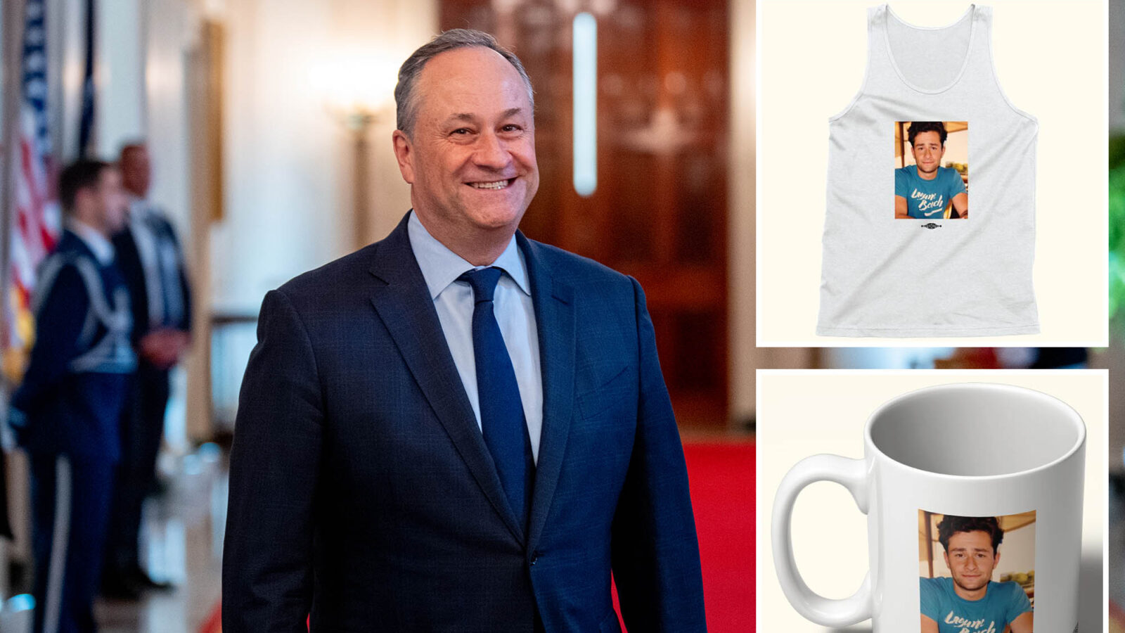 Second Gentleman Doug Emhoff released 2024 campaign merch Thursday featuring a much younger version of himself, prompting social media users to go wild.