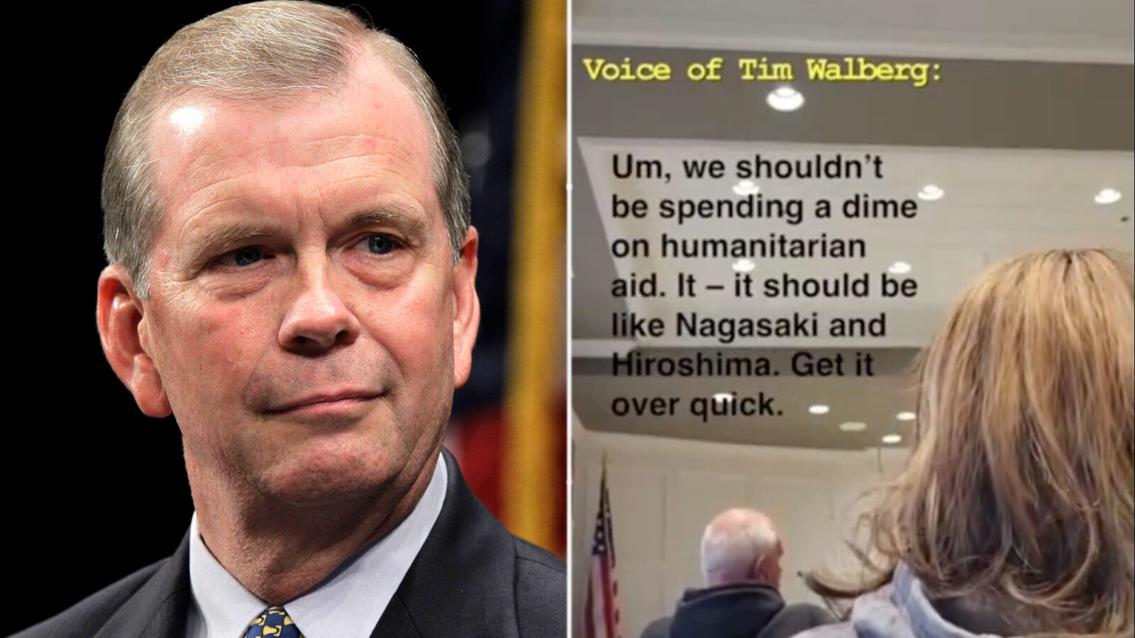 “We shouldn’t be spending a dime on humanitarian aid. It should be like Nagasaki and Hiroshima. Get it over quick,” Rep. Tim Walberg of Michigan said in a clip spotlighting a segment of his town hall last Monday.