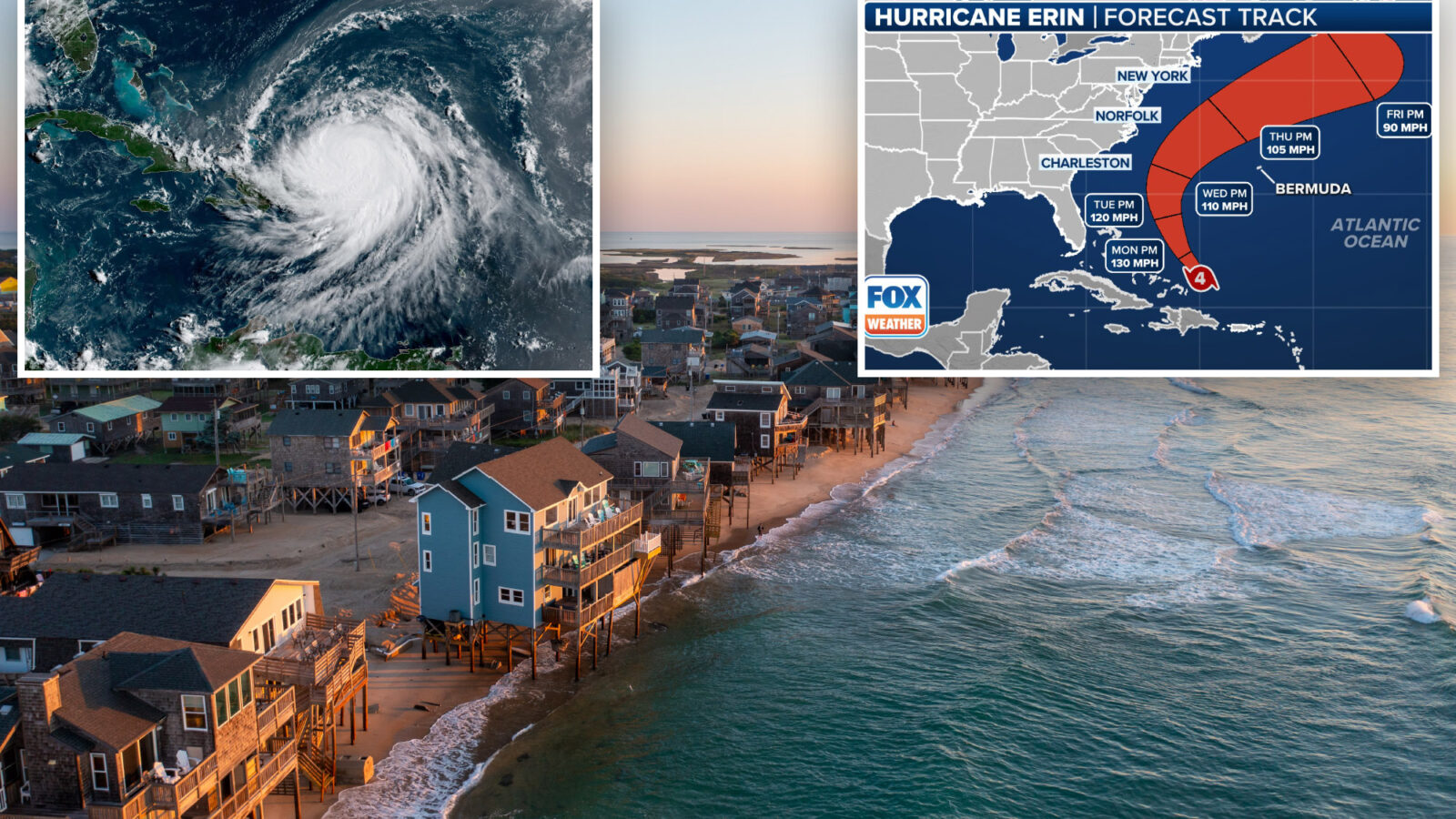 “Even though some weakening is forecast beginning (Monday night), Erin will remain a large and dangerous major hurricane through the middle of the week,” the NHC wrote.