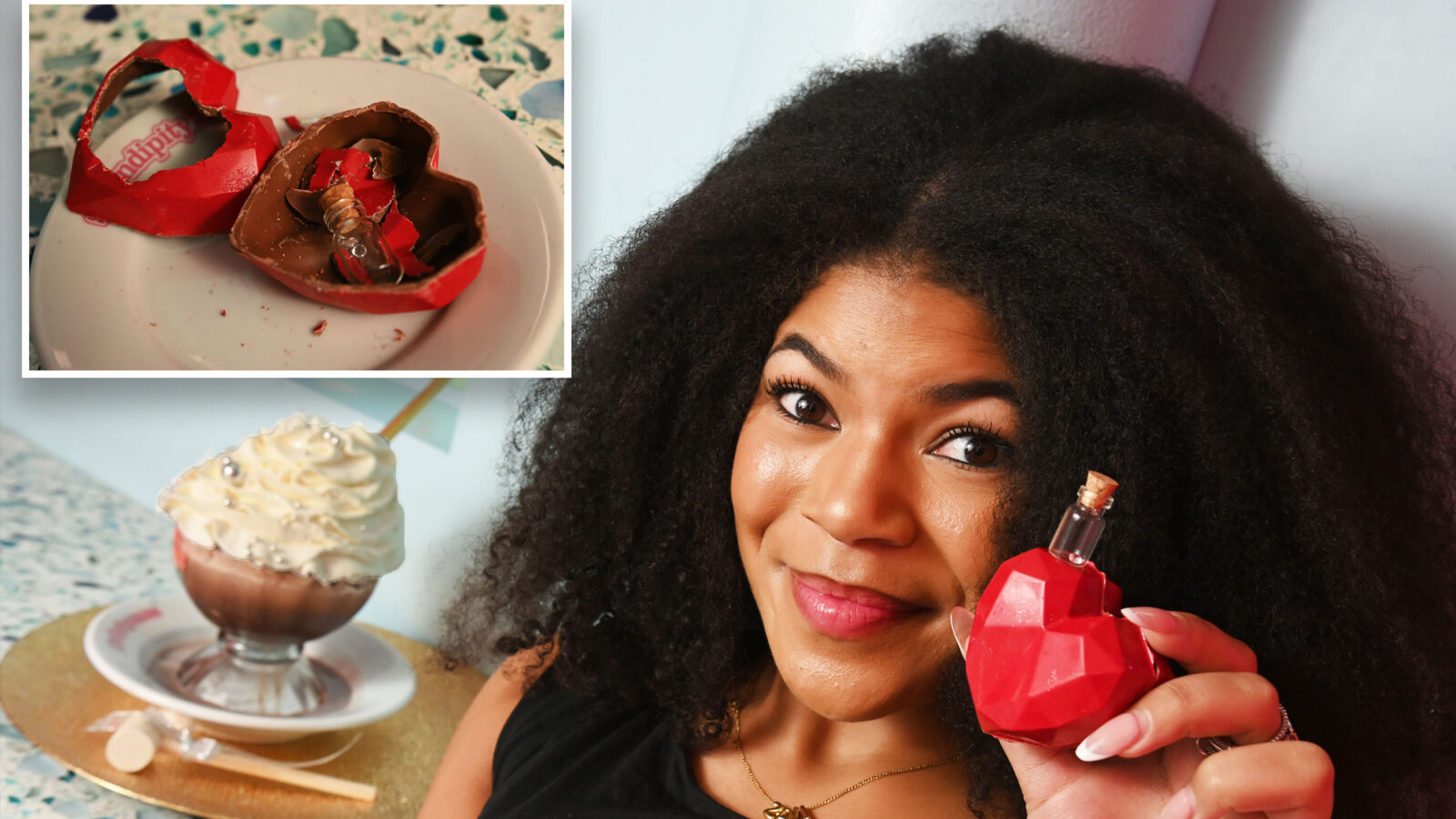 Customers are served a little wooden mallet with their $29.95 hot chocolate in order to bust open the heart — and expose their jewel.