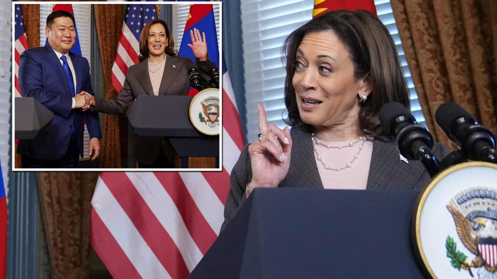 Vice President Kamala Harris aimed for the stars but came up short Wednesday, repeatedly talking about “space cooperation” alongside Mongolian Prime Minister Oyun-Erdene Luvsannamsrai.