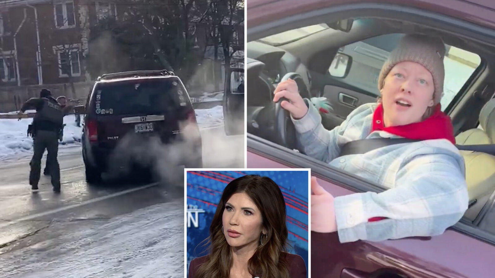 “You see how quickly the situation unfolded, how the officer was in front of the vehicle when she sped off,” Noem stressed to Tapper. “How she ran into him. And how he had to take quick action based on his training to defend himself and his colleagues.