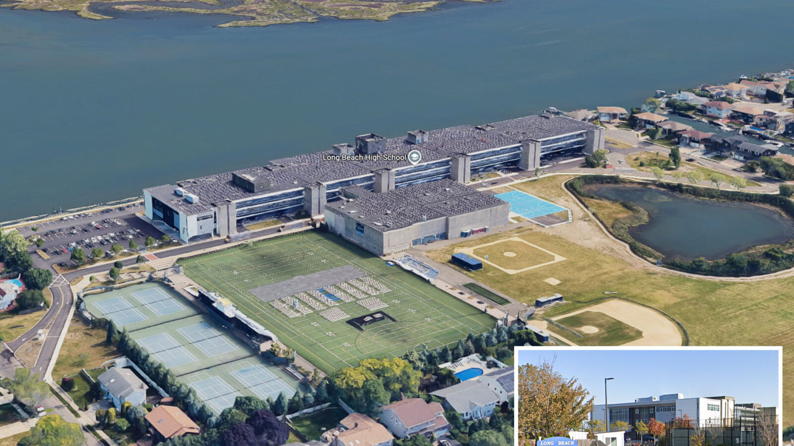 Police swarmed the school as students were ordered into a lockout, with sources saying Long Beach Middle School and Long Beach Elementary School also affected.