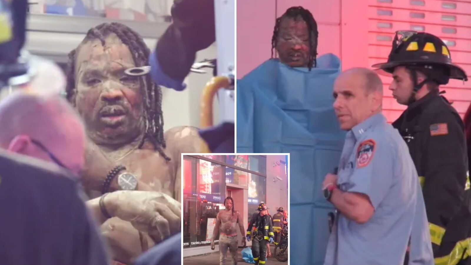 Fire Marshals at the scene told The Post that someone threw accelerant on the victim at the corner of 41st and Broadway and lit him on fire.