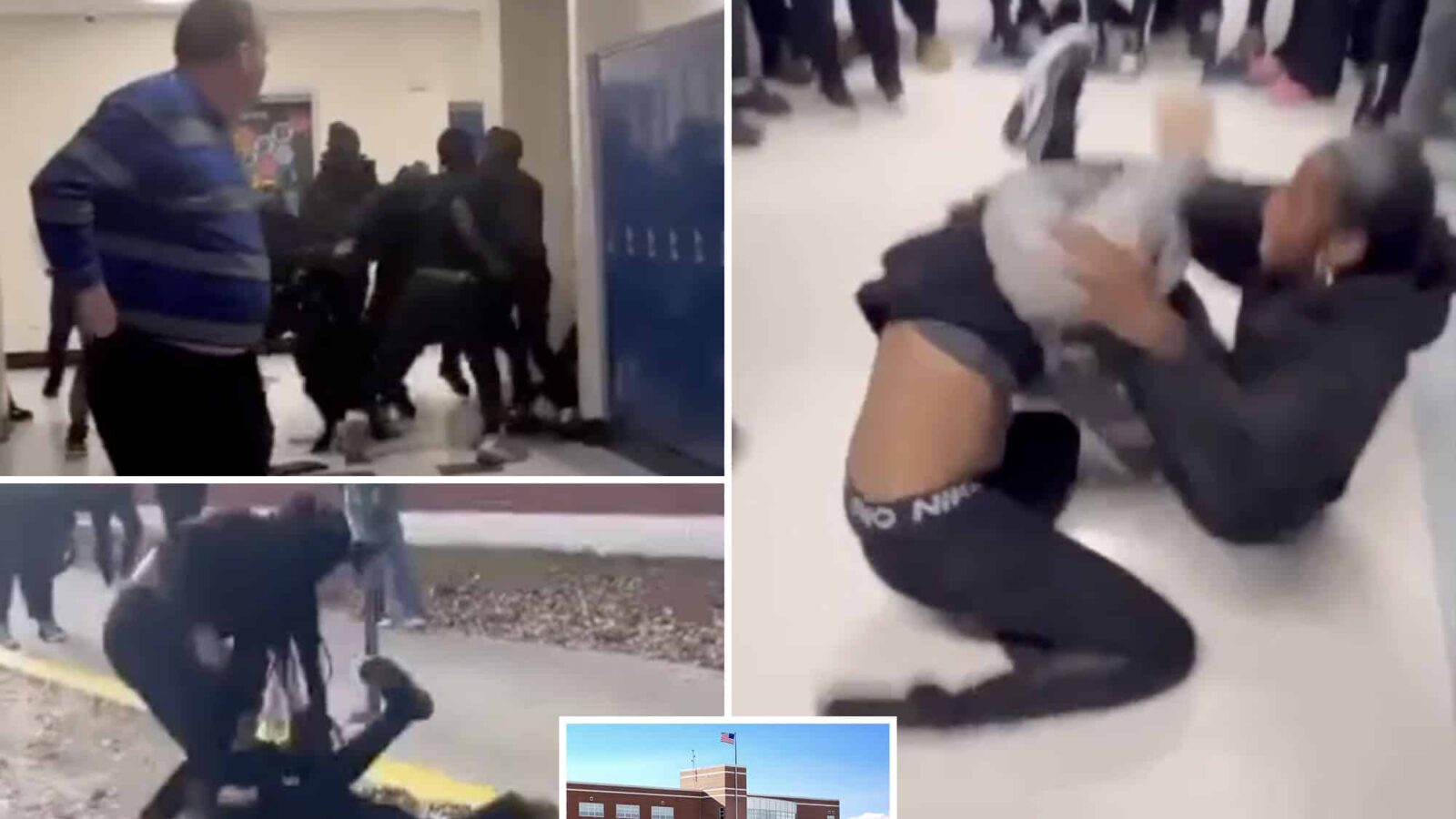 Video on social media shows a large fight that broke out in the high school’s hallway as dozens of students watched.