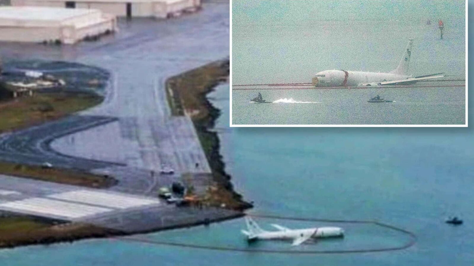 A U.S. Marine Corps spokesperson said Monday that the P-8A aircraft overshot the runway at a Marine base and went into Kaneohe Bay.