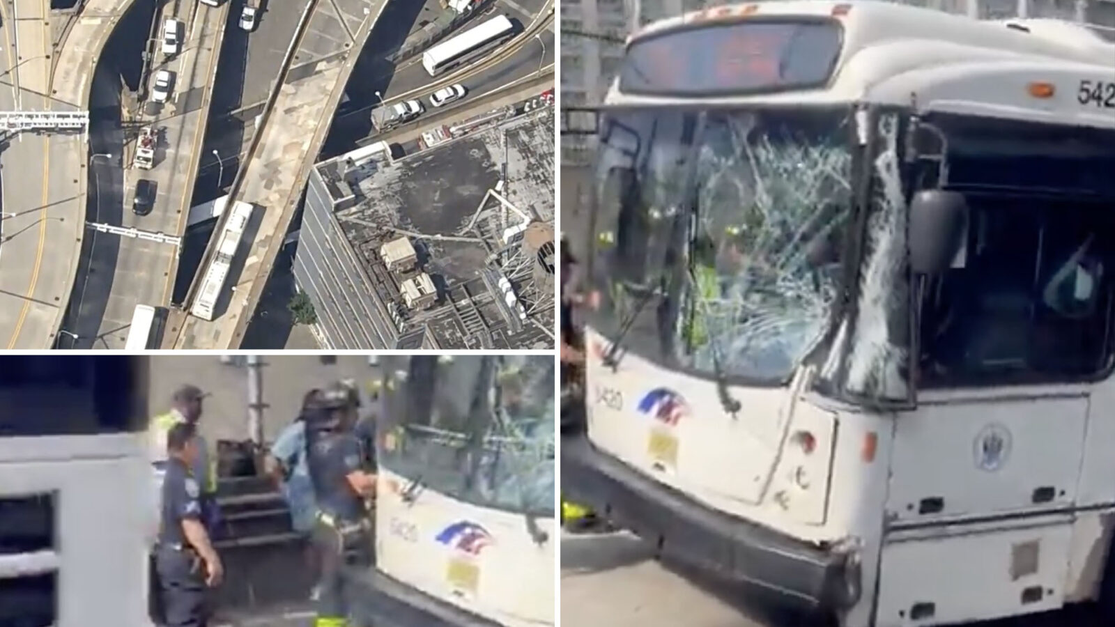 The two buses collided around 8:50 a.m. just outside the Lincoln Tunnel at West 41st Street and Dyer Avenue, according to the FDNY and police sources.