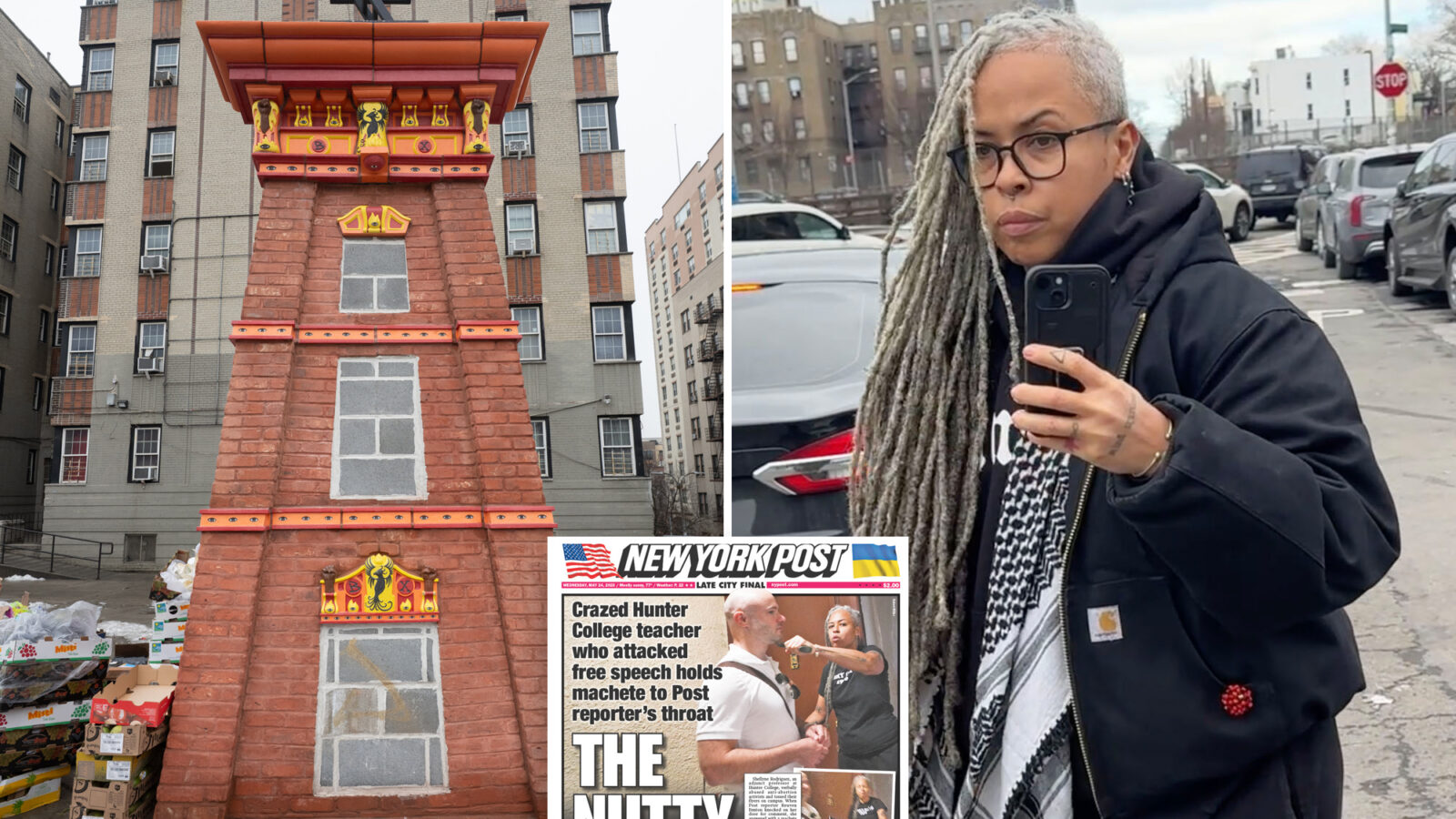 In her column, titled “Why My Public Art Drives the Right Nuts,” she claims her media “crisis was not born yesterday, and since its inception, my permanent public artwork has kept the score,” referring to her 23-foot-tall brick, steel and terracotta Marxist monstrosity called “Phoenix Ladder: Monument to the People of the Bronx.”