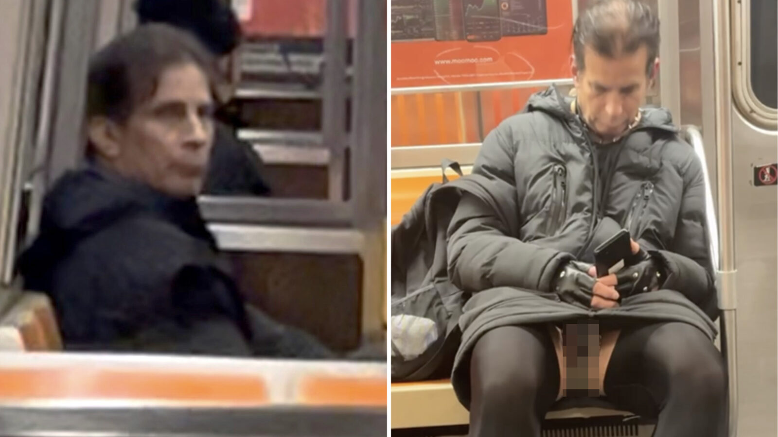 An Upper East Side subway rider was photographed wearing a leather strap and chain “cage’’ that was barely covering his genitals — and was visible to other shocked transit customers — but cops said there is nothing they can do about it.