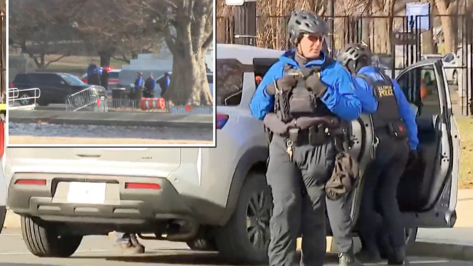Capitol police officers took the suspicious man into custody in a grassy area after he drove his vehicle “near Peace Circle, and into the grassy area near Third Street, NW, and Constitution Ave,” according to a press release.