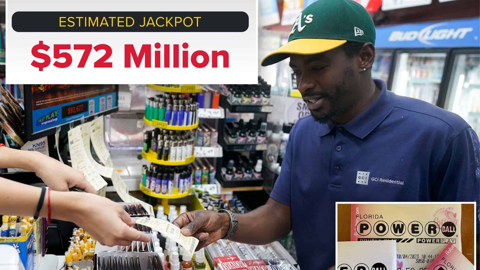 The jackpot now sits at an estimated $572 million – with a one-time cash payout option of $286.7 million – ahead of Wednesday night’s drawing.