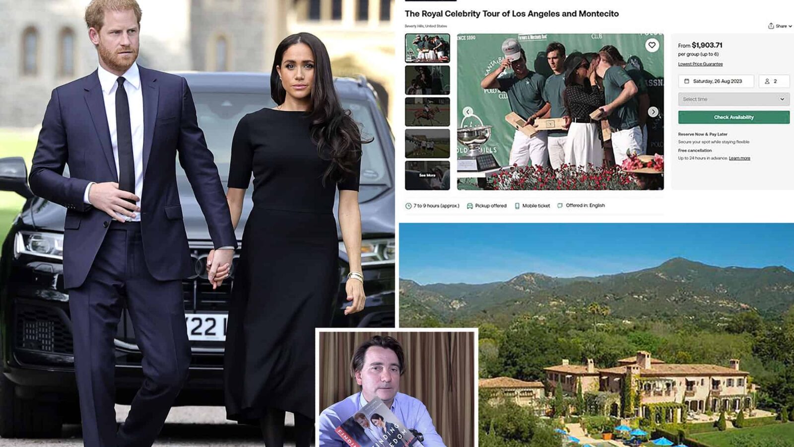 The tour was advertised alongside a photo of the Duke and Duchess of Sussex kissing at a polo match in Santa Barbara, Calif.