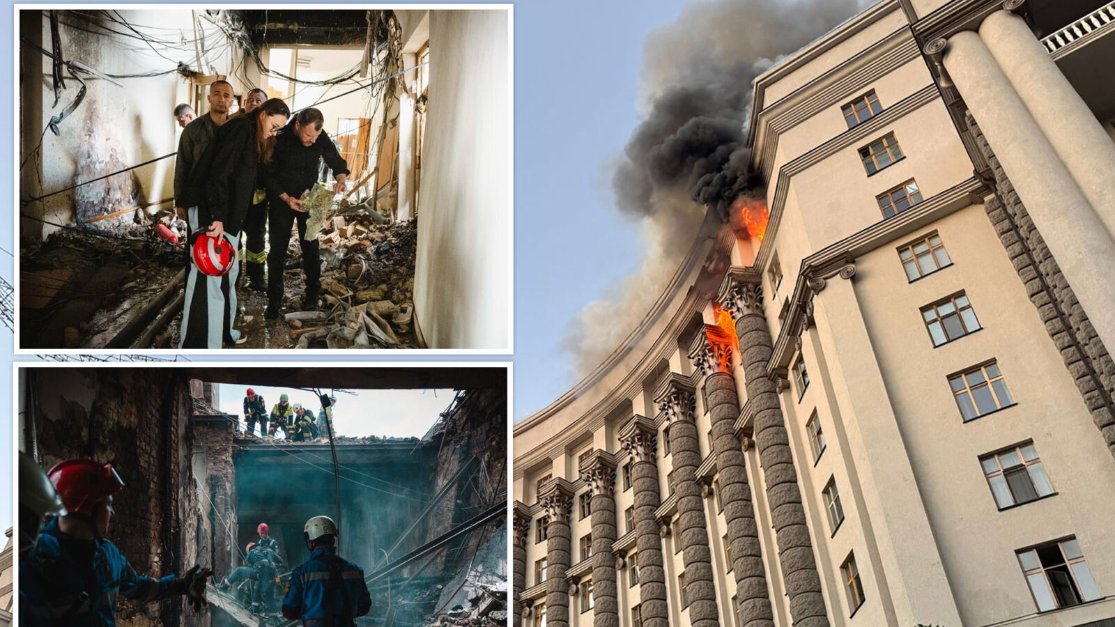 The strike on the government’s headquarters, which includes cabinet members’ offices, came at 6 a.m., causing a “huge” fire and blasting a massive hole into the top two floors of the building, which houses Svyrydenko’s office, she said.