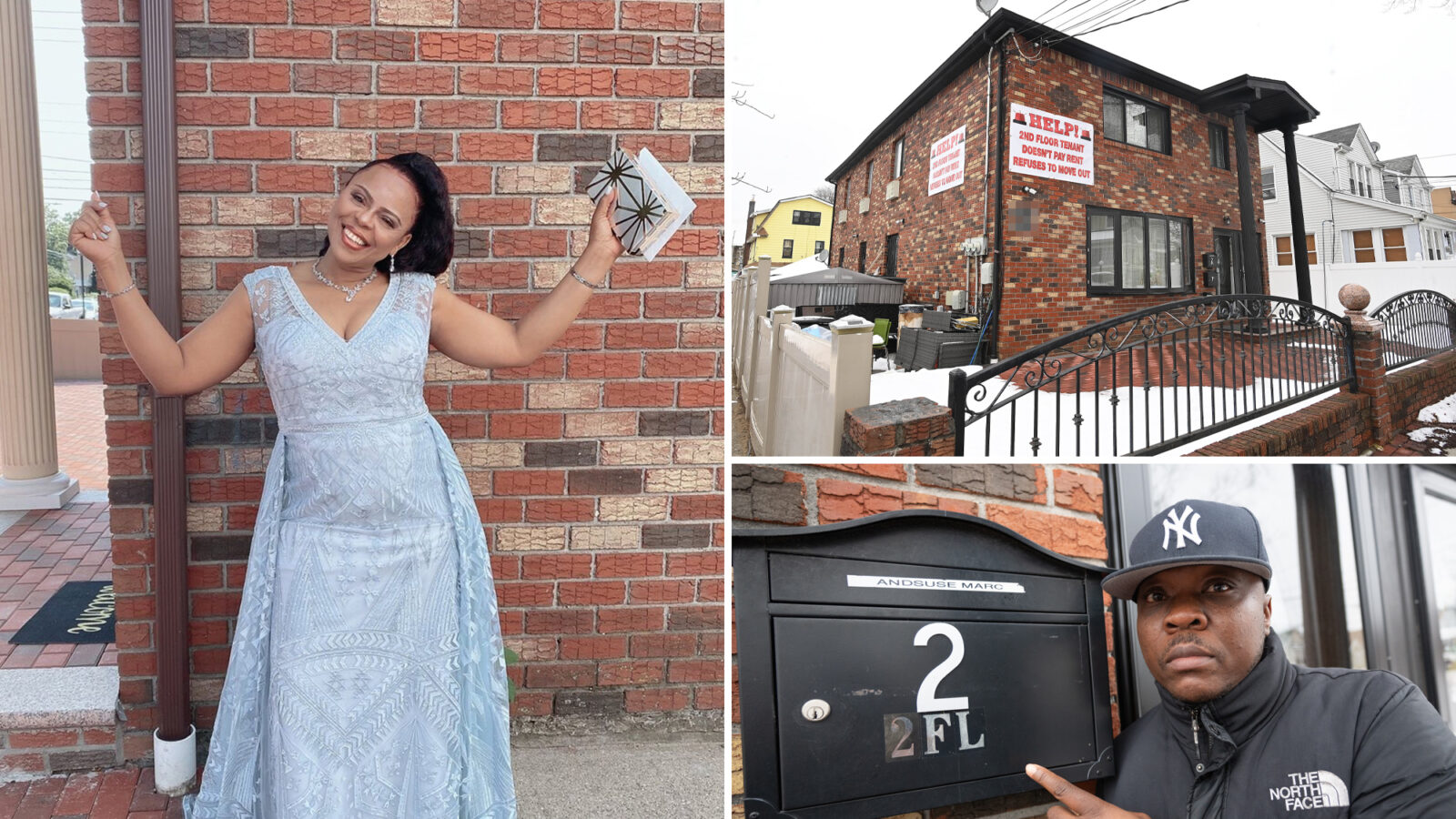“HELP! 2ND FLOOR TENANT DOESN’T PAY RENT REFUSES TO MOVE OUT,” scream a pair of red-and-white banners on the side and front of a brick single-family home on 117th Road in St. Albans.