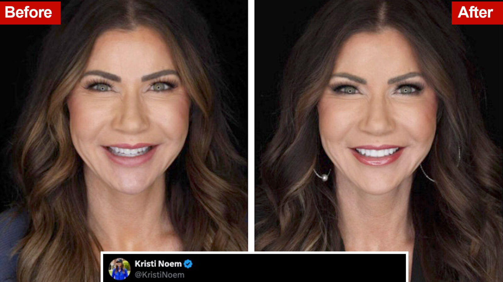 Noem noted in the polished testimonial – complete with before and after photos and several close-ups of her new chompers – that in the world of politics, “everything is speaking and interviews and giving speeches” and she wanted people to “look at me to hear the words that I say and not be distracted by something that I’m wearing or how I look.”