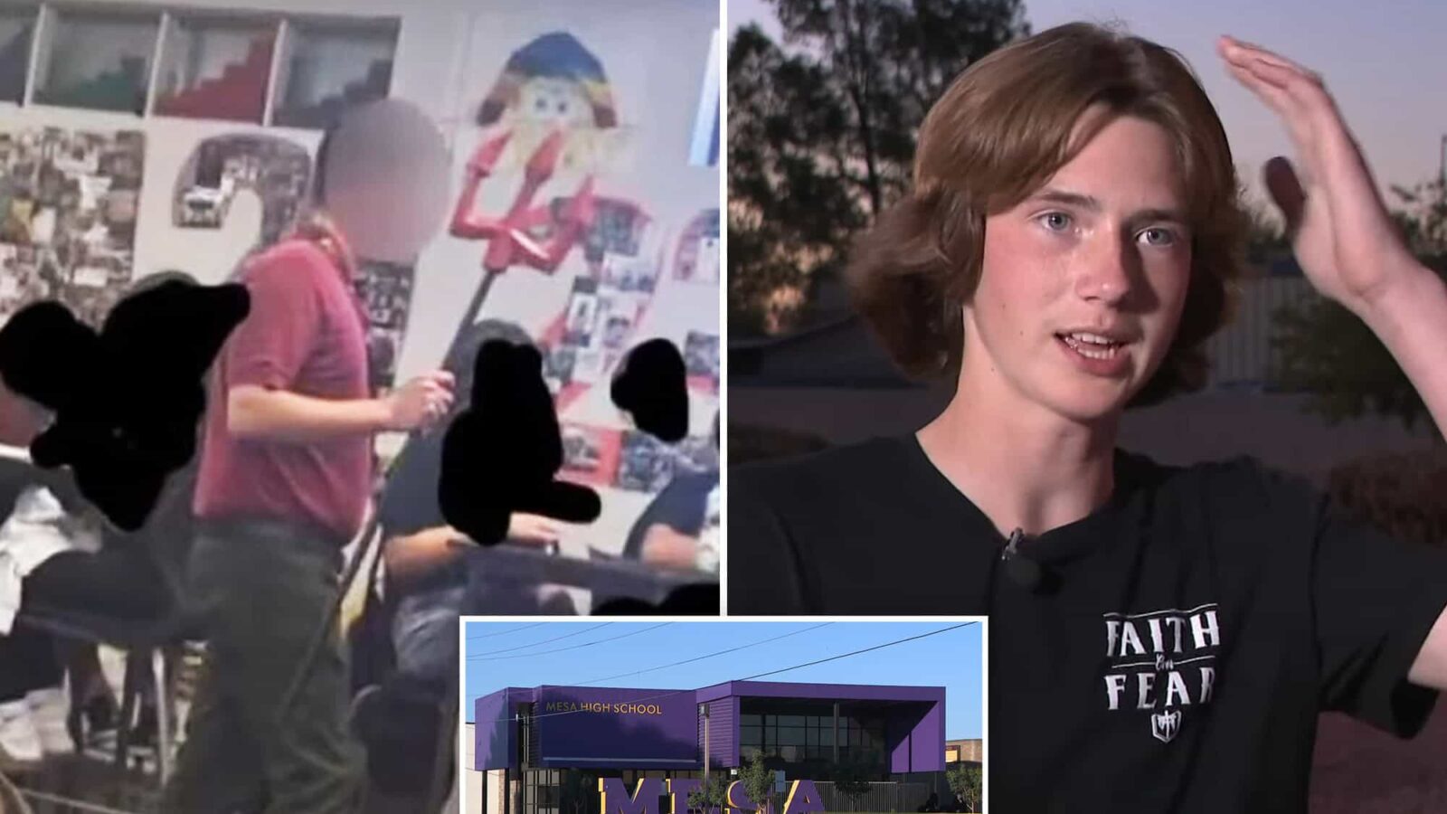 Mesa High School sophomore Nathaniel Hamlet claims his teacher walked into class Wednesday wearing devil horns and carrying a pitchfork, which he waved over students’ heads as they entered the room to the “Hail Satan” greeting.