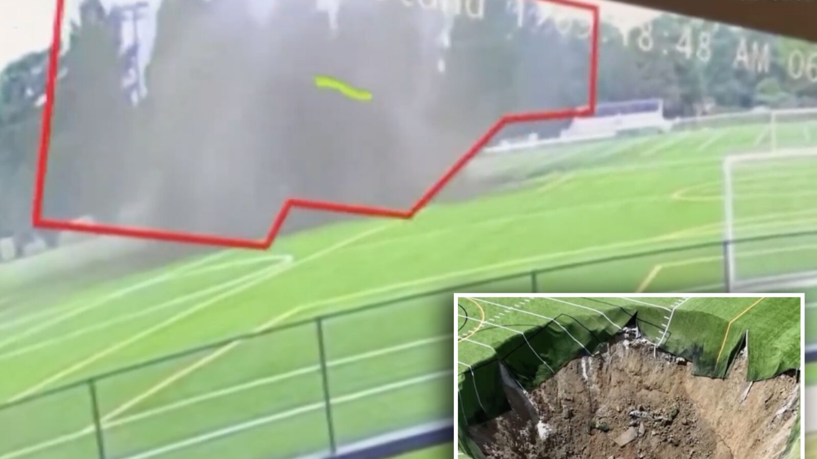 A massive sinkhole suddenly opened up in the middle of a soccer field at an Illinois park — leaving a gaping area in its wake — after an underground mine apparently collapsed, new video shows.