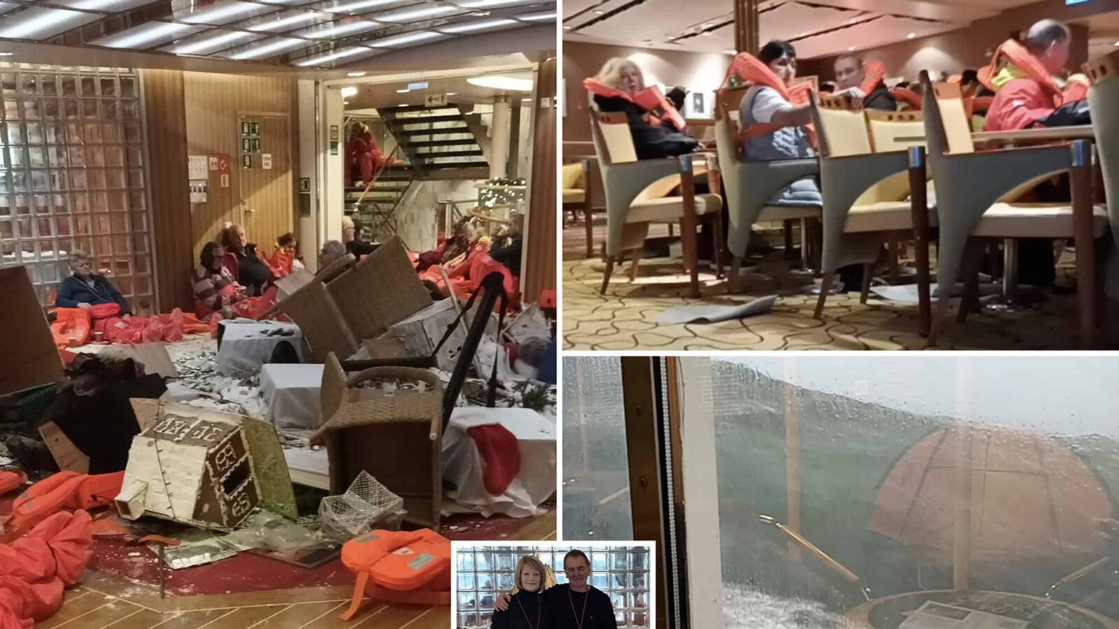 “She had a baby in her arms but she went flying,” he said, adding that the “captain had to move the bridge to the passenger lounge due to three windows blown out by a wave.”