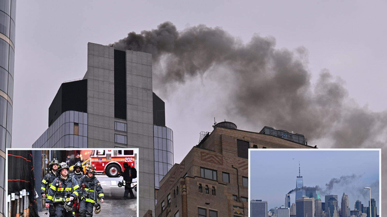 Video of the blaze shows massive plumes of dark smoke quickly rising from the top of the skyscraper.