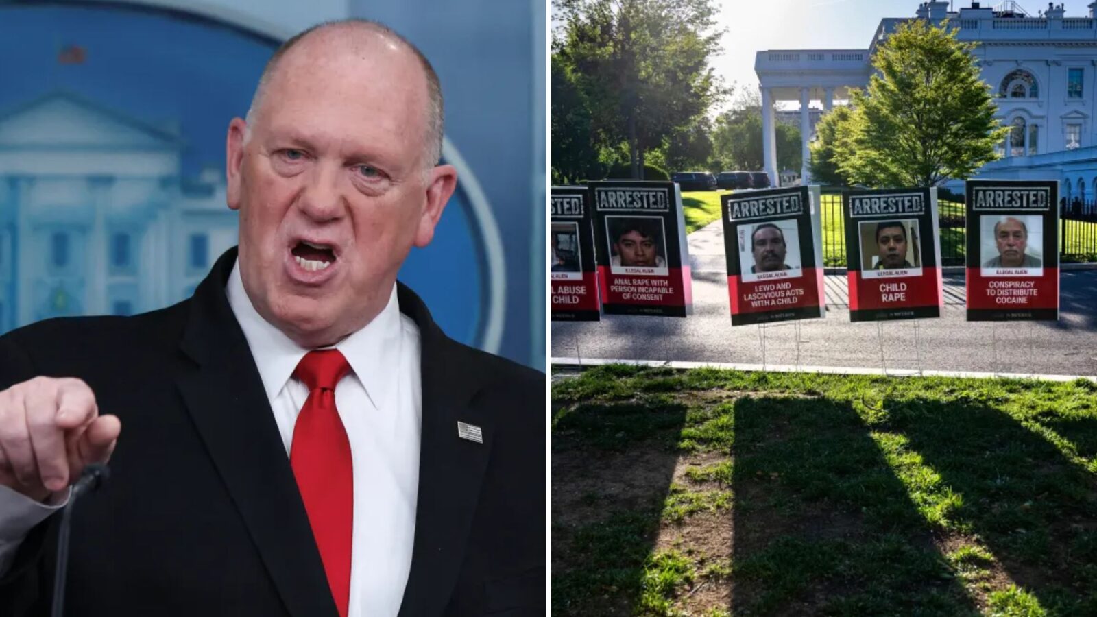 The White House driveway was lined with mugshots Monday morning showing some of the illegal immigrants who have been arrested and placed in deportation proceedings since January for offenses including rape and child molestation.
