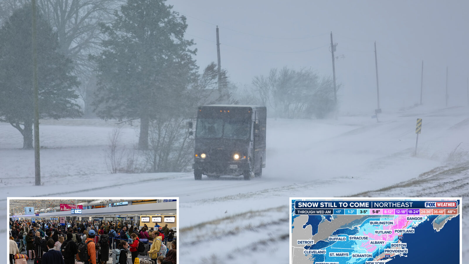 A mix of moisture and cold air is expected to bring 1 to 3 inches of snow across Ohio, Pennsylvania, upstate New York and much of New England, while middle New York, Vermont, New Hampshire and Maine are expected to see 5 to 8 inches.