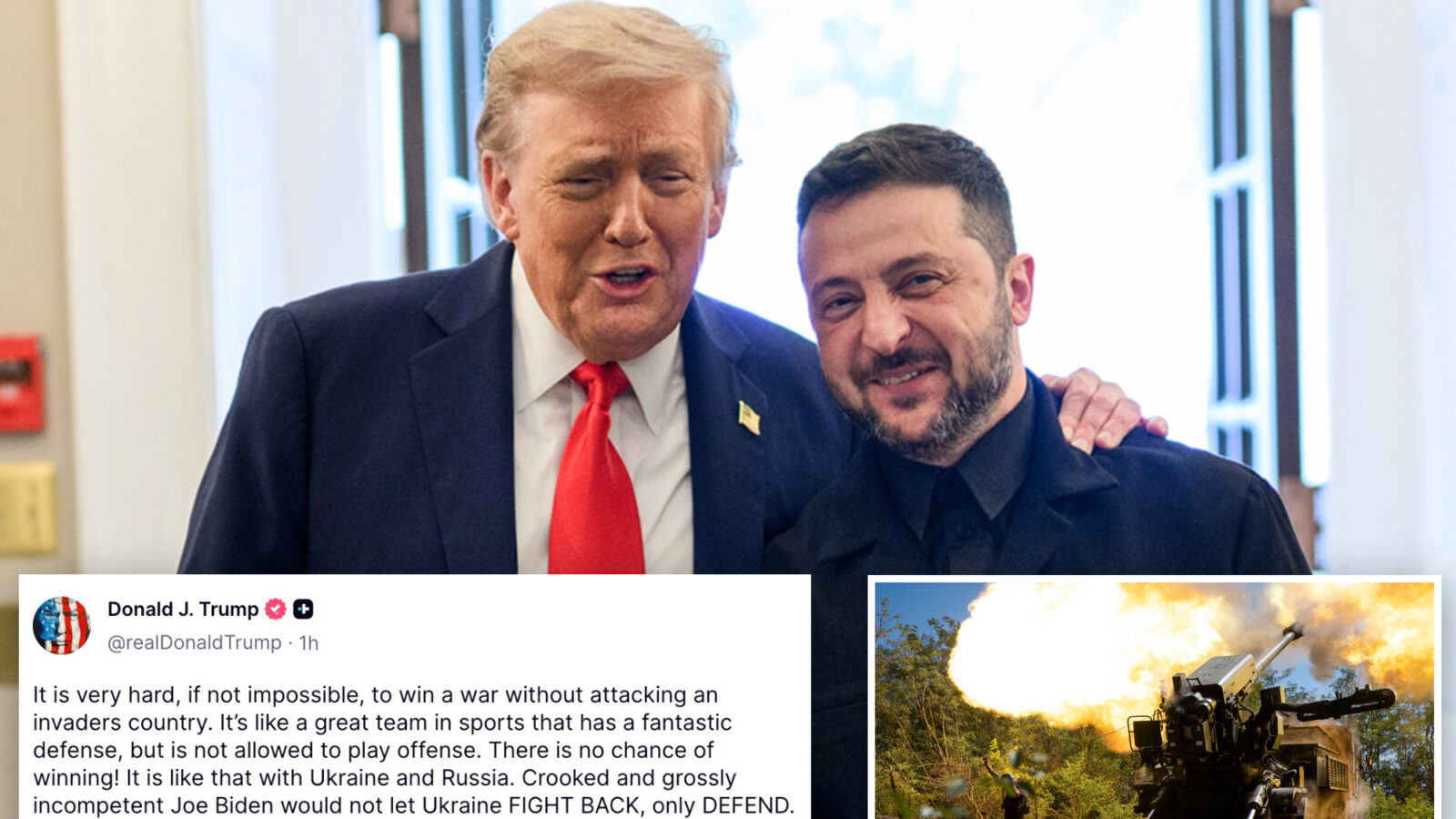 “It is very hard, if not impossible, to win a war without attacking an invaders [sic] country. It’s like a great team in sports that has a fantastic defense, but is not allowed to play offensive. There is no chance of winning! It is like that with Ukraine and Russia,” Trump wrote.