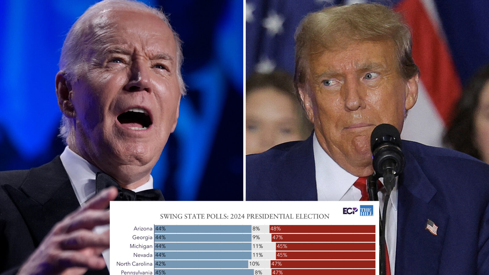 Trump, 77, has the largest margins against Biden, 81, in North Carolina (47-42%), Arizona (48-44%) and Georgia (47-44%), according to the Emerson College poll released Tuesday.
