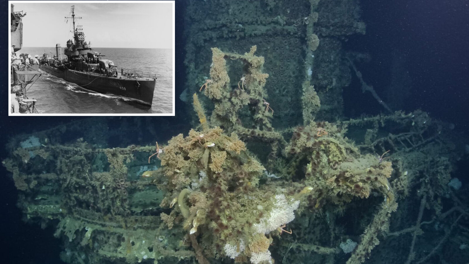 Photos released by the team show the Laffey still sitting upright on the seafloor with much of her bow and midsection intact despite more than 80 years underwater.