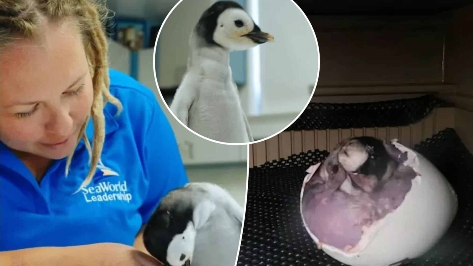 The SeaWorld team initially poked a hole in the egg, but ultimately needed to break her out from the shell entirely after five days when it became clear the hatchling wasn’t able to do it on her own.