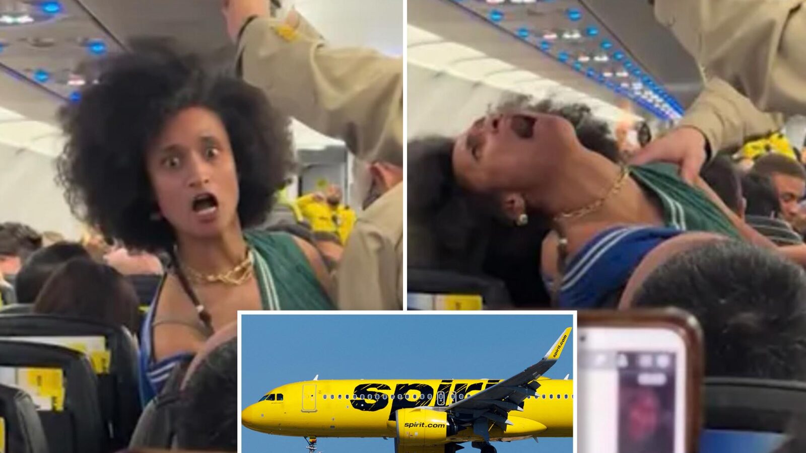 Viral footage shows the moment an unidentified woman was arrested on a Spirit Airlines plane after an over-the-top meltdown that rivaled Jim Carrey’s contortionist performance in “The Mask.”