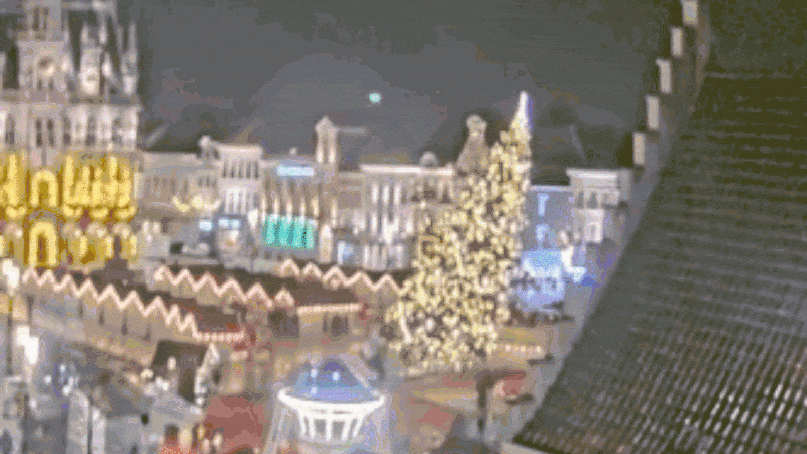 Security camera footage on Belgian news media showed a brightly lit 66 ft high Christmas tree slowly leaning over, then collapsing next to a Christmas market on Thursday as a merry-go-round turned in the historic town square.