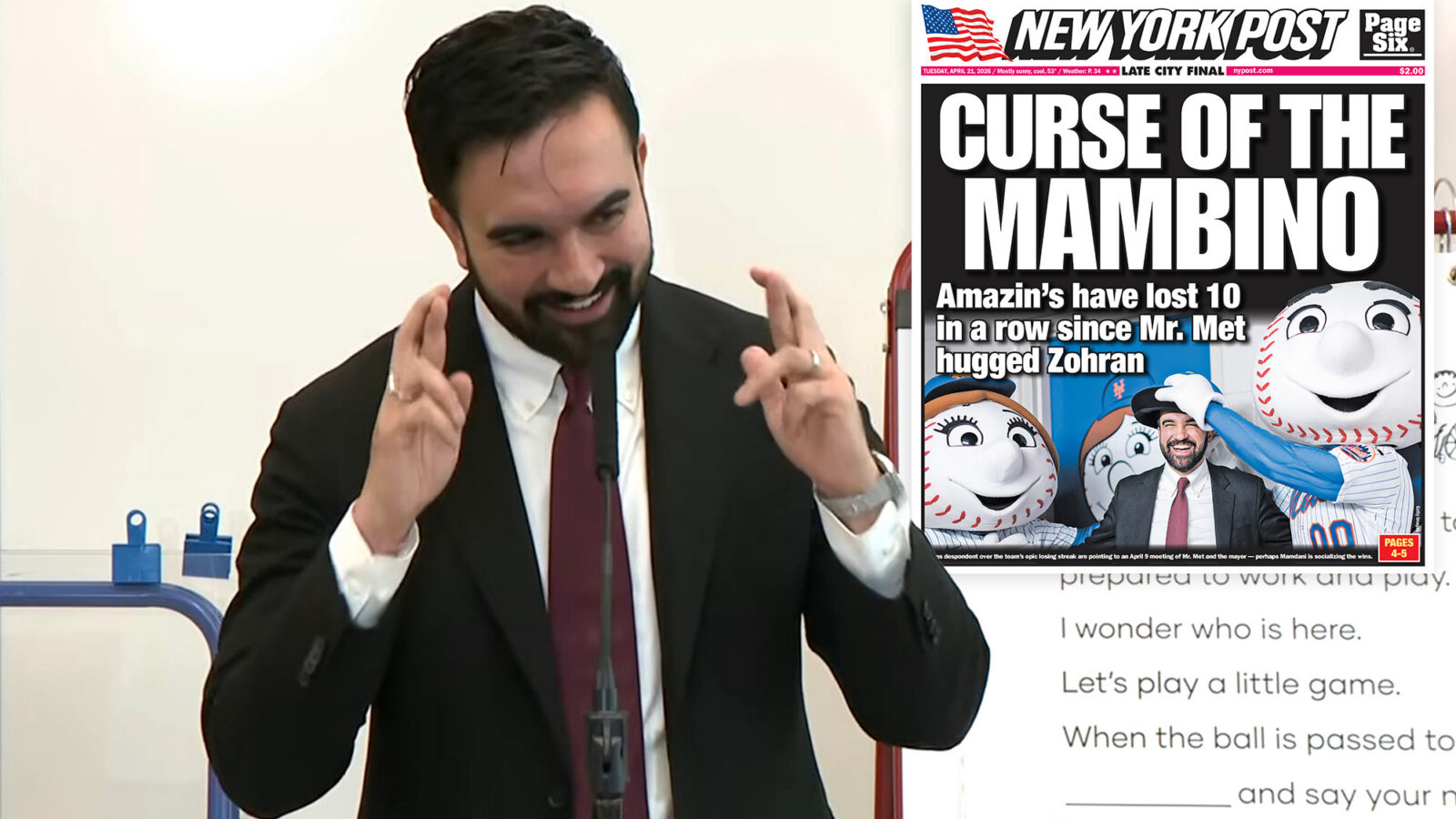 Mayor Zohran Mamdani is “keeping the faith” as his hometown Mets are facing a historic losing streak — with many fans pointing the finger at “Mayor Mambino” for cursing the team with a Mr. Mets hug.